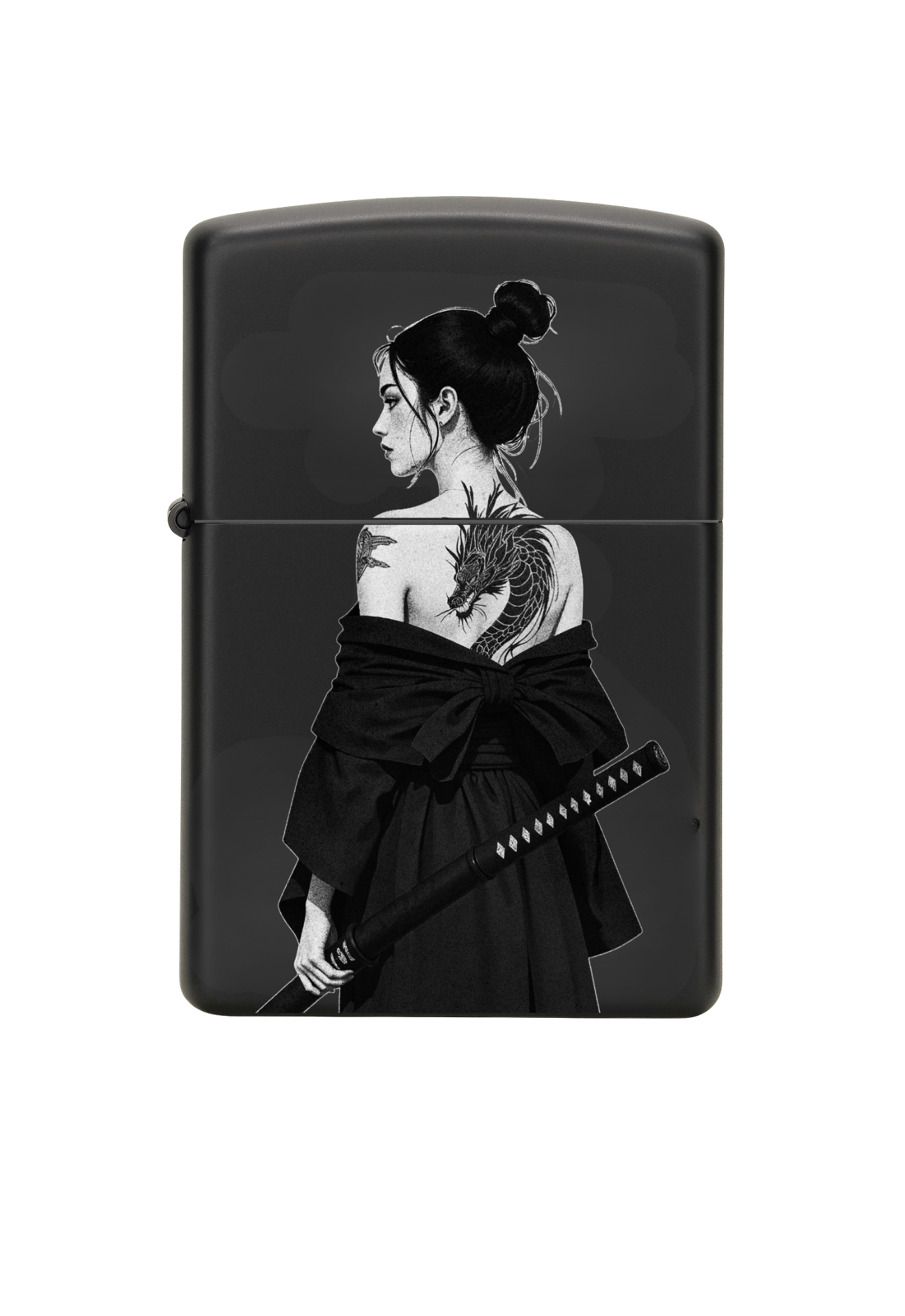 Briquet style Zippo Noir Matte – Samurai Girl / Briquet rechargeable à essence.